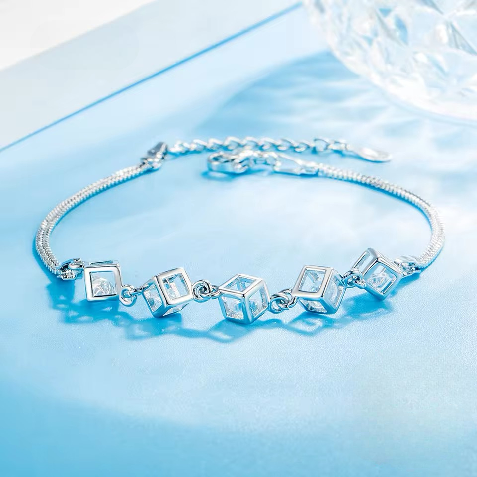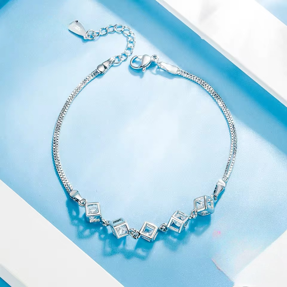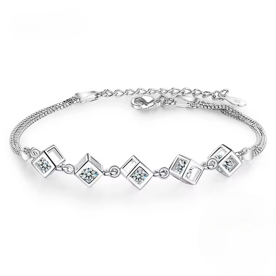Pulsera de Plata Esterlina 925 con Zircón Morado – Elegancia Geométrica