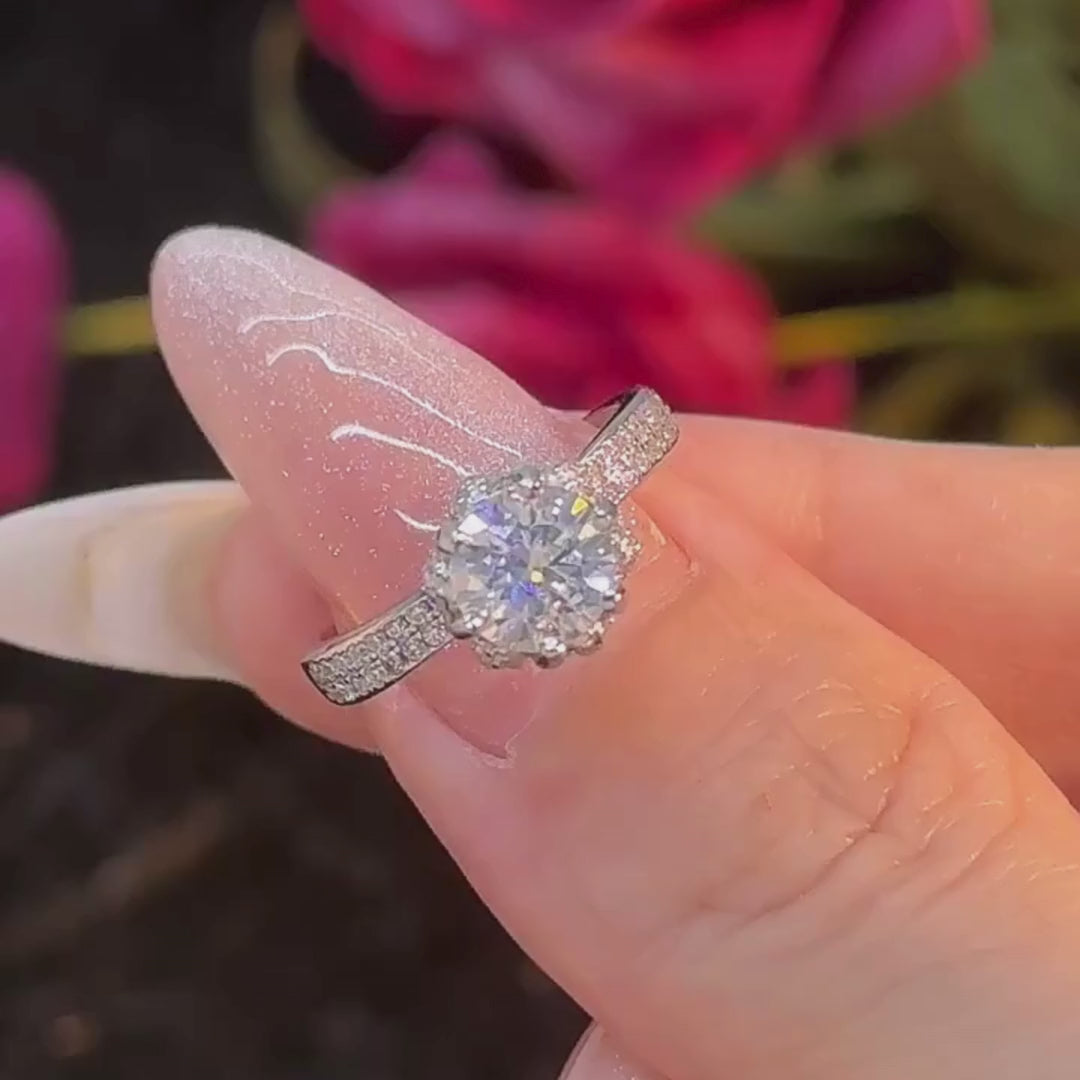 Moissanita de 1 Quilate: La piedra central es una moissanita de 1 quilate, una gema creada en laboratorio que posee características muy similares a las de un diamante.
