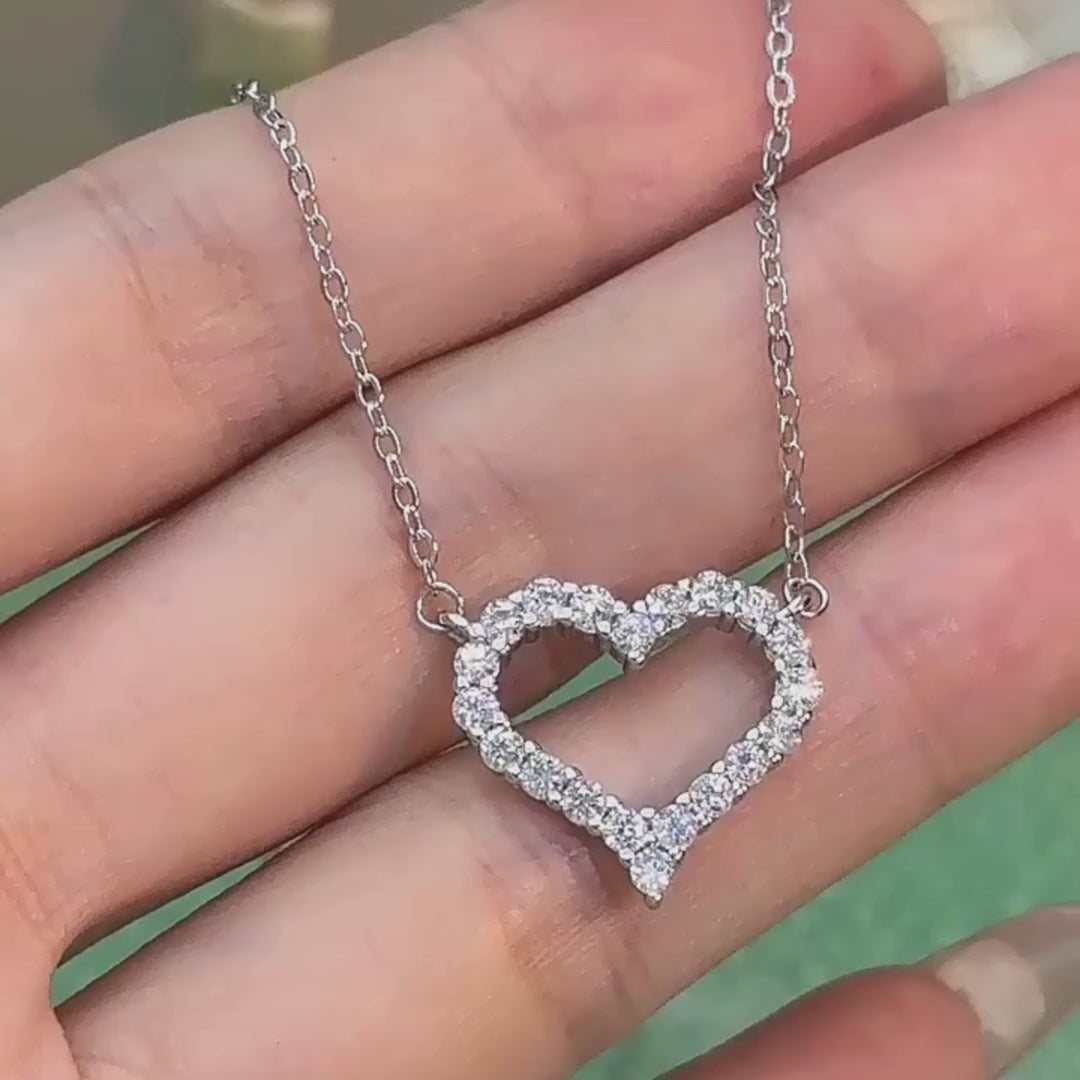 Collar de Plata Esterlina 925, diseño corazón micro moissanita total 1.7 quilate, certificado GRA